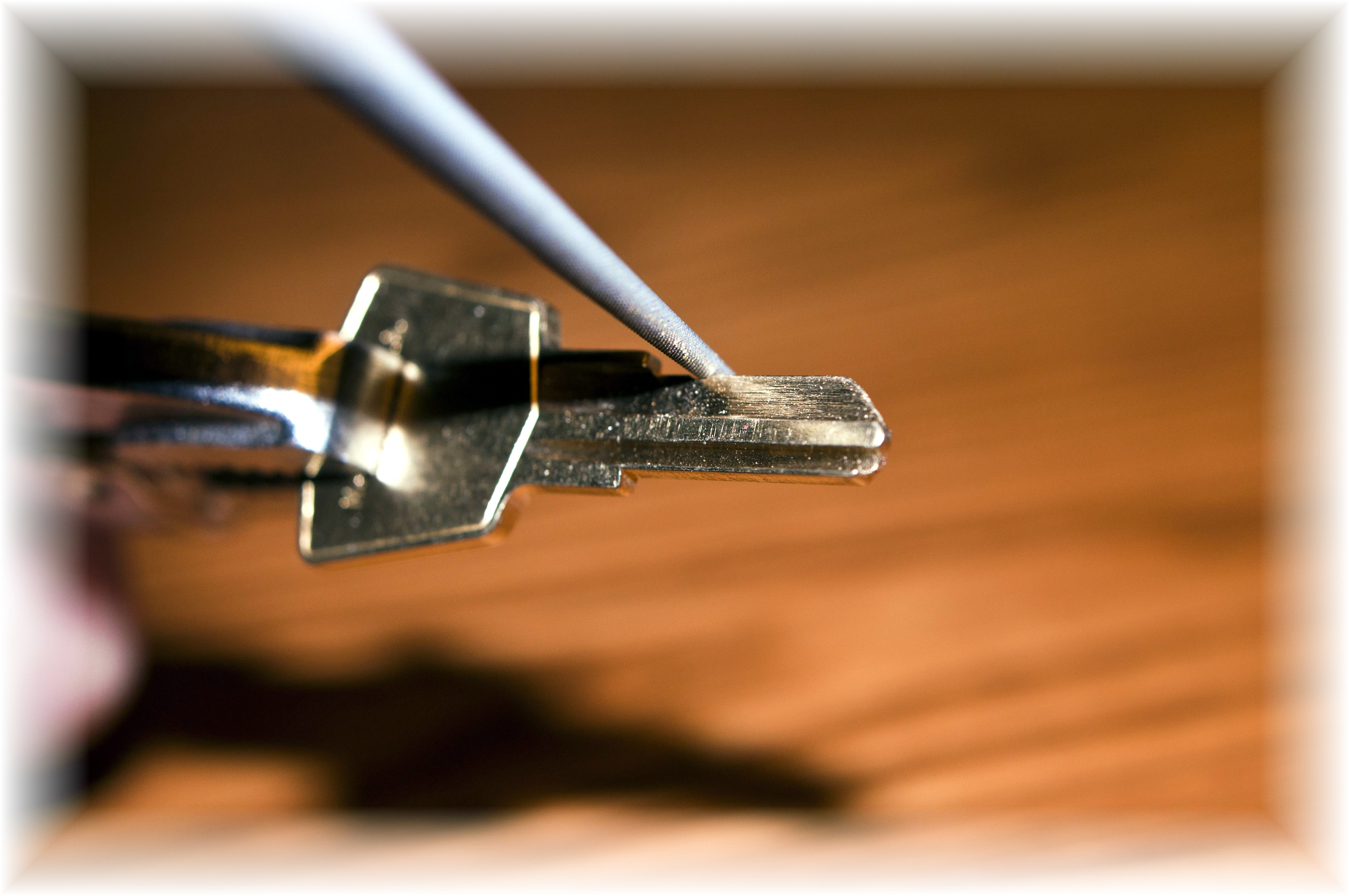 This service is common in the case of filing cabinets, truck tool boxes and the like, where the keys have been long lost and new ones are needed but the lock is of a design that would make dis assembly not possible. It is a largely underused but invaluable option to replacement of the lock. In this process the new key is made by way of binding the internal workings with a new uncut key. By turning and moving the key the internal locking parts move and make “impressions” on the surface of the key. The site of these impressions are then filed a small amount and the key is returned to the lock for another series of binding and wiggling. Then the process is repeated until the lock is freely moving and the key is fitted. The key now is set but needs to be duplicated to a fresh uncut key because the stress of impressioning weakens the key considerably. Total time at most for an impressioning session is usually 10-20 minutes per lock and inclusive to the service is the first key. Additional keys are offered at the normal rate for duplication. At this time I would be the only service provider for the Timmins area in respect to impressioning.